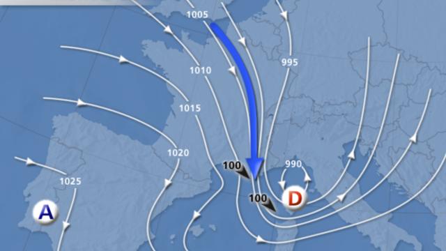Ces vents sont liés à la canalisation du flux atmosphérique, favorisée par la présence des chaînes de montagne élevées qui bordent la face Nord du bassin méditerranéen occidental.