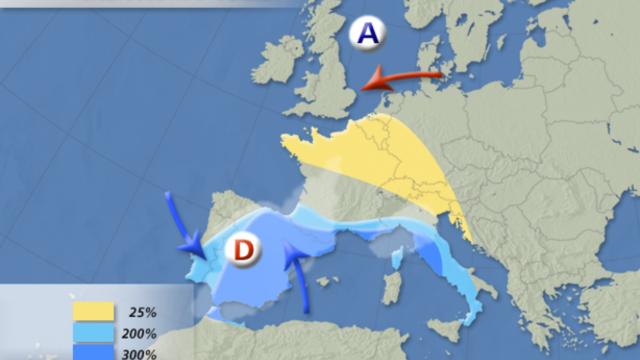 Selon notre synthèse des prévisions saisonnières, ce scénario climatique fut récurrent en cette première moitié de l'été. Outre le risque de violents orages ponctuellement dévastateurs, la persistance d'une dépression sur la péninsule ibérique et d'une succession de fronts orageux à répétition sur les pays riverains de la Méditerranée (dont le sud-ouest de la France) pourrait conduire à des températures restant légèrement inférieures aux normales et à des précipitations supérieures de l'ordre de 200 à 300 % (notre carte). Les neiges pyrénéennes pourraient alors passer l'été bien au-delà des normes à haute altitude...