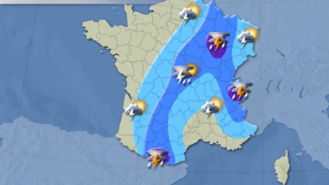 Si une certaine accalmie est attendue dans le courant de la matinée sur les régions concernées par les orages de la nuit, l'instabilité reprend de la vigueur dès le début de l'après-midi sur les mêmes régions que la veille : essentiellement du sud-ouest au nord-est, en passant par le Massif-Central, Bourgogne et Lorraine.