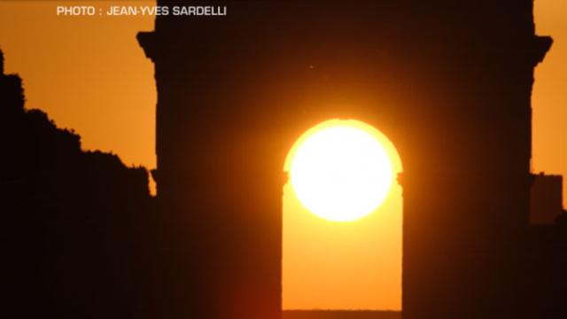 Paris : le soleil se lève sous l’Arc de Triomphe !