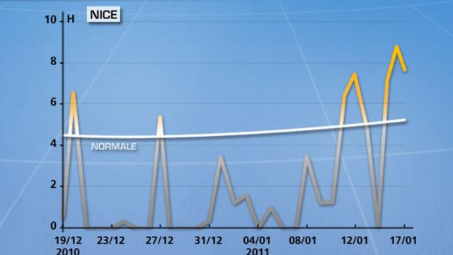 Près de 80 % de déficit d’ensoleillement pour la deuxième quinzaine de décembre et 40 % depuis le début de l’année, c’est ce que révèle l’analyse des relevés de la station météorologique de Nice. Habitués à profiter en moyenne de 5h de soleil par jour à cette période, les Niçois ont subi depuis le 19 décembre près d’1 jour sur 2 de totale grisaille et 5 jours d'un ciel très nuageux.