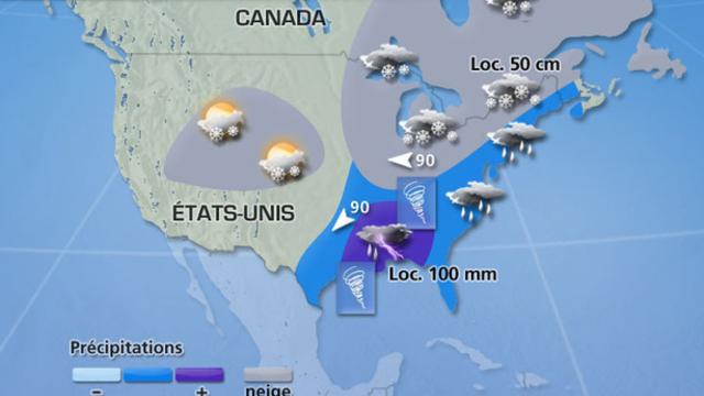 Ce week-end et lundi, une première dégradation pluvio-neigeuse marquée a circulé sur l'est des Etats-Unis et le Québec. On a relevé jusqu'à 50 cm de neige sur le Vermont, mais aussi de nombreuses régions québécoises, où la circulation reste encore difficile aujourd'hui. Plus au sud, ce sont des tornades qui se sont produites en Louisiane, faisant une victime, ainsi que des inondations à la Nouvelle-Orléans . On a relevé plus de 100 mm localement.