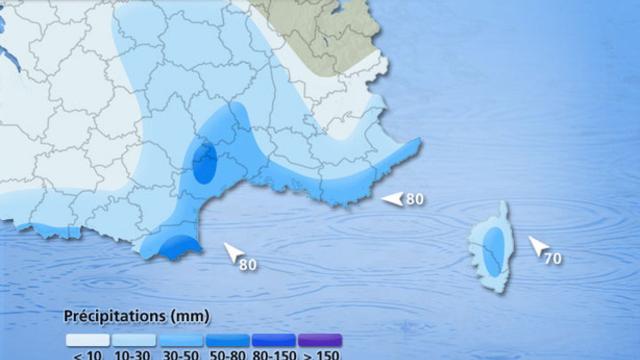 En France, après un court répit lundi, un nouvel épisode pluvio-orageux actif concernera un tiers sud à partir de mardi. Sa localisation reste à préciser, mais une nouvelle fois, le Languedoc-Roussillon pourrait être le plus affecté par pluies et vents forts. Peu de régions méridionales seront épargnées par les précipitations. Localement, on attend jusqu'à 200 mm depuis ce week-end.