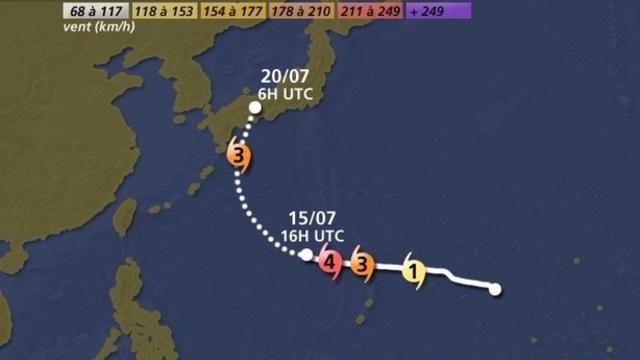 Ce typhon situé au nord des îles Mariane, se dirige vers le nord-ouest et pourrait toucher l'île d'Okinawa et le sud de l'archipel nippon d'ici dimanche. Sa trajectoire est à surveiller de très près d'autant que ce typhon a atteint catégorie 4 sur une échelle qui en comporte 5 avec des rafales pouvant approcher les 230 km/h ce samedi.