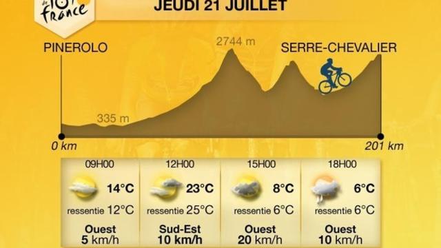 Ce jeudi, les concurrents du 98ème Tour de France poursuivront leur parcours jusqu’à Serre-Chevalier. Une étape en altitude qui croisera peut-être sur son chemin des conditions météo plutôt inhabituelles : avec un risque d’averses bien présent en fin d’étape, il n’est pas impossible que les cyclistes soient accompagnés de quelques flocons dans leur ascension sur le col du Galibier, déjà touché par de bonnes chutes de neige en début de semaine.