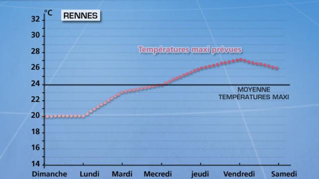 C'est donc à partir de mercredi que l'anticyclone viendra se centrer sur les îles britanniques. Les nuages bas seront encore bien présents en matinée, puis ensuite le soleil finira par se généraliser. Les températures fraîches à l'aube, commenceront à progresser sensiblement dans l'après-midi. Jeudi et vendredi devraient donc être deux journées estivales, avec un beau temps généralisé et des températures de saison, proches de 25°C au nord et jusqu'à 30°C de la vallée de la Garonne à l'arrière-pays méditerranéen (voir notre carte).