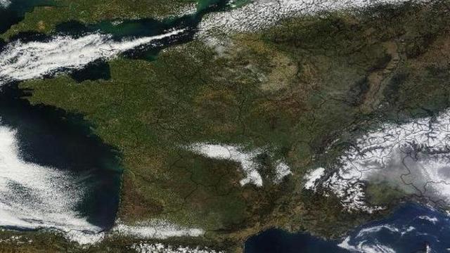 Dans la nuit du samedi au dimanche, avec l'arrivée de l'air froid, de faibles chutes de neige se sont produites au nord de la Somme, saupoudrant le sol de quelques centimètres. Lorsque le ciel s'est dégagé, cela a permis de voir ces sols enneigés sur l'image satellitale. En cours d'après-midi, la neige a disparu sous l'effet du vent et surtout du soleil.