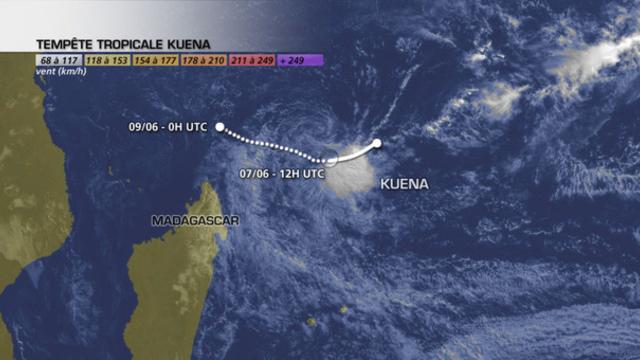 Cette tempête baptisée Kuena se dirige actuellement vers l'ouest-sud-ouest à 17 km/h. Elle devrait dans les prochains jours incurver sa trajectoire vers le nord-ouest et pourrait donc toucher les Seychelles d'ici demain soir. Cette prévision demande encore confirmation car la fiabilité reste limitée quant à la trajcetoire précise de cette tempête tropicale. A noter qu'il faut remonter à 1991 pour retrouver la formation d'une tempête tropicale à cette période de l'année.