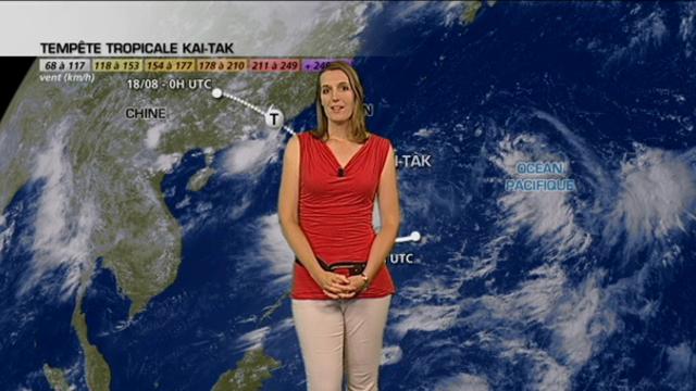 Dans le Pacifique nord-ouest, un phénomène tropical plus menaçant a vu le jour. Il s'agit d'une tempête tropicale qui a été baptisée Kaï-Tak par les services météo de Hong-Kong, dont le tour est venu de nommer les dépressions et autres phénomène cycloniques. Après la tempête Khanun, qui a frappé la Corée, cette nouvelle tempête, Kaï-Tak, se situait mardi matin au nord de l'archipel philippin. Le nord de Philippines est d'ailleurs concerné par de très fortes pluies d'orages, raison pour laquelle une alerte est en cours.