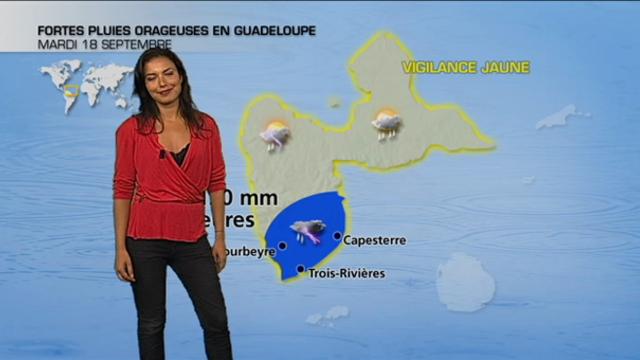 Au cours de la journée de mardi, la Guadeloupe a subi le passage de l'onde tropicale n°32 avec une masse d'air très humide et instable qui a donné lieu à d'importantes pluies orageuses sur le sud de la Basse-Terre. Entre Capesterre, Trois-Rivières et Gourbeyre, les cumuls de précipitations ont atteint jusqu'à 100 à 120 millimètres en 6 heures, d'où l'activation d'une vigilance orange pendant quelques heures. Suite à ces orages 200 000 clients ont été privés d'électricité pendant quelques heures. Le reste de la Guadeloupe a subi des précipitations beaucoup plus faibles hormis la région de Sofaïa où il est tombé 40 à 60 mm.