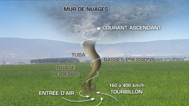 La dépression orageuse était dans son ensemble pas si violente que cela mais les conditions en altitude ont favorisé la formation d’une ligne de grains qui est passée rapidement sur la région. C’est sous l’un de ces grains qu’une tornade, violent tourbillon ascendant, a pu se former et, avec un puissant vent vertical, occasionner ces dégâts et arrachés des toitures.