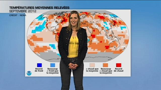 Le mois de septembre 2012 qui vient de s’écouler est le plus chaud des mois de septembre enregistré depuis 1880 pour de nombreuses régions du monde selon la NOAA, l’organisation américaine de l’atmosphère et des océans. L’ouest américain (Nevada, Utah, Arizona…), le Québec, Terre-Neuve, le centre du Groenland, le Nord de l’Amérique du Sud (Venezuela, Colombie), le sud du Chili et de l’Argentine, ainsi que le Japon (Hokkaido et Tohuko) sont toutes des terres qui ont enregistré des records de chaleur absolus depuis le début des relevés météo. Il s’agit également du troisième mois de septembre le plus chaud enregistré depuis 1950 pour l’Australie. Au niveau mondial, la température combinée de la terre et de la mer donne une valeur moyenne de 16,3°C, et bat ainsi le record du précédent mois de septembre le plus chaud, celui de 2005.