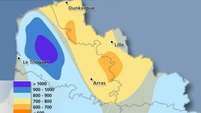 Ces différences s'expliquent par la présence des collines de l'Artois qui culminent à pourtant à peine à 200 mètres d'altitude... Mais ce relief a une influence climatique déterminante sur la région concerant la répartition des pluies. Orienté à peu près parallèle à la côte d'Opale, quand il subit un flux d'Ouest perturbé, il retient les pluies car il est disposé "au vent", c'est à dire qu'il reçoit le maximum de pluie. En revanche, plus on se dirige vers l'Est et vers la plaine des Flandres "sous le vent", et plus l'influence de ces collines décroît, et par conséquent, plus les pluies d'origine océanique diminuent.