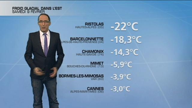Les régions les plus méridionales ont également été touchées avec d'assez fortes gelées relevées entre Cannes et Marseille (entre -4 et 0°C).