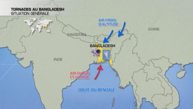 Avec des vents à 250 km/h, la tornade F3 qui a balayé plusieurs villages de la région de Brahmanbaria a été particulièrement destructrice : au moins 20 personnes ont perdu la vie dans ces bourgades qui se situent à 100 km de la capitale Dacca, 300 autres ont été blessées, et plus de 500 habitations ont été endommagées. Une prison a également été partiellement détruite, mais aucune évasion n’a été signalée. Le pays le plus «tornadique» du monde