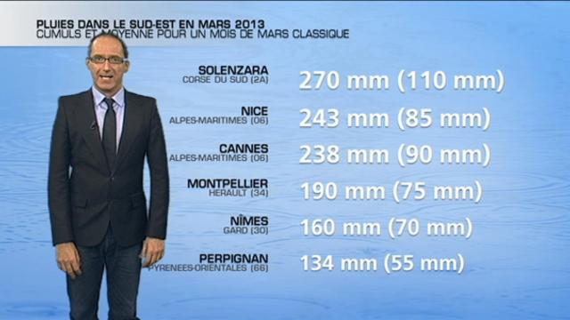 A Nice et Cannes justement avec près de 240 mm de pluies recueillis en un mois, il s'agit du mois de mars le plus pluvieux depuis au moins 1945.