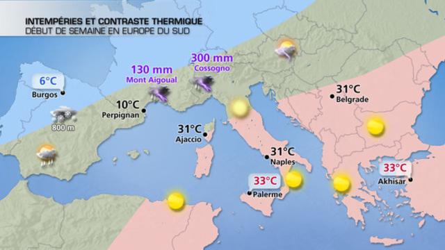 En descendant vers la Roumanie, la Bulgarie ou bien encore la Bosnie-Herzégovine et la Grèce, des pointes vers les 33°C ont été enregistrées et sont encore possibles mercredi et jeudi et même localement 35°C sur les Balkans.