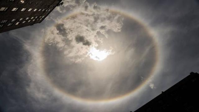 Un superbe halo solaire a créé la stupéfaction des new yorkais ce mardi après-midi aux Etats-Unis. Peu commun,