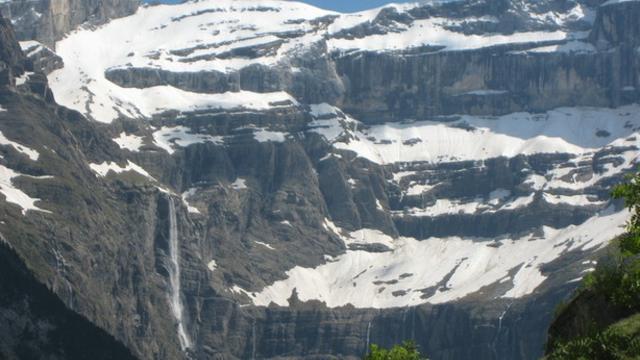 Précisons donc qu'il existe des névés (plaques de neige glacées persistantes) et des glaciers sur les plus hauts massifs pyrénéens : ceux de la Maladetta (dont le Pic d'Aneto est le point culminant de toute la chaîne, de l'autre coté de la frontière espagnole) ; ceux du massif de Néouvielle, du Vignemale et de Gavarnie (Hautes-Pyrénées) pour l'essentiel ; on les trouve parfois dès 2600 m d'altitude, jusqu'aux cimes (3000 à 3400 m). Comme pour les Alpes, ces glaciers sont affectés par un fort recul depuis le 19 ème siècle en raison du réchauffement climatique réçent, mais ces dernières années, l'occurence d'hivers très enneigés stabilise quelque peu leur recul...