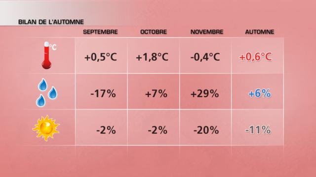 Cet automne aura été marqué par un mois d'octobre particulièrement chaud avec un excédent de 1,8°C par rapport à la normale, ce qui place ce mois au 6ème rang des mois d'octobre le plus chaud depuis un siècle.