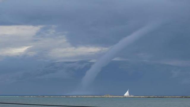 Une trombe marine est un phénomène météorologique de petite échelle correspondant à un tourbillon de vent s’étendant depuis la base d’un nuage convectif jusqu’à la mer. Ce tourbillon de vent prend la forme d’un entonnoir qui peut se développer jusqu’à atteindre la surface de la mer. La trombe arrive alors à maturité. Celle-ci, en balayant l’eau entraîne à sa base une excroissance bouillonnante, appelée « buisson » et constituée d’une nuée de gouttelettes au dessus de la mer. La trombe marine se forme par temps très instable, lorsque de l’air très froid en altitude surplombe de l’air chaud en surface.