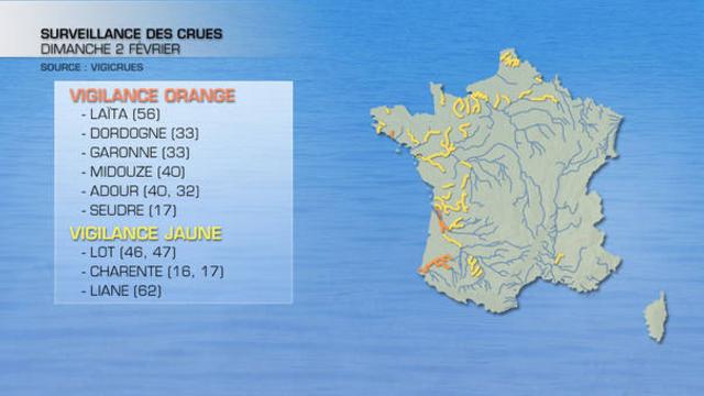 - Pari ailleurs l'Adour et la Midouze sont maintenues en "niveau de vigilance Orange crue" même si là aussi la tendance est à la baisse du niveau des eaux. Néanmoins, ce dimanche matin, des inondations localisées ont touché quelques secteurs de Bayonne.