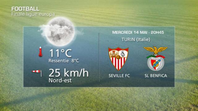 Ce soir se joue la finale de la Ligue Europa, la seconde plus prestigieuse coupe européenne de football après la Ligue des Champions. Le titre détenu par le club anglais de Chelsea sera donc remis en jeu, entre les portugais du Benfica Lisbonne, finaliste l’an dernier, et les espagnols du FC Séville. La Chaîne Météo vous détaille les conditions météo de cette rencontre décisive.