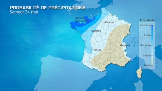 L'instabilité diminue ce samedi. Les averses ne concernent plus qu’un large quart nord-ouest du pays alors que le soleil et un temps plus agréable s’imposent plus facilement de l'Alsace aux Pyrénées.