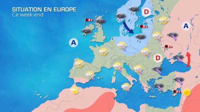 En matinée, les nuages recouvrent toutes les régions s’étendant du nord de la Bretagne aux Flandres en passant par la Normandie. Au sud de la Garonne, la grisaille est tenace. Au fil des heures, des éclaircies se développent. Dans l’après-midi c’est un ciel variable que l’on retrouve sur toutes ces régions du Sud-ouest et celles situées au nord de la Loire. Partout ailleurs, après la dissipation de quelques brumes, le soleil fait de belles apparitions. Dans le courant de l’après-midi des cumulus se développent à nouveau sur tous les massifs avec un risque d’orage en direction des Alpes, du Jura et des Vosges. Enfin près de la Méditerranée, le soleil s’impose en Languedoc-Roussillon grâce au mistral et à la tramontane. En Provence côte d’Azur et en Corse, malgré quelques nuages l’après-midi on ne parle plus d’averses côtières comme hier.