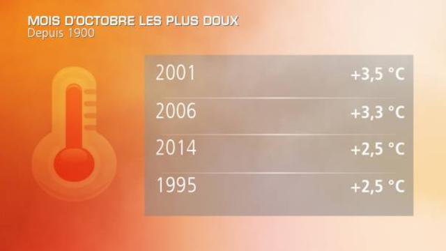 Ce mois d'octobre a été exceptionnel. Il se classe au 3ème rang des plus chauds, devant octobre 1995, mais derrière 2001 et 2006. Le Sud-ouest a été privilégié, avec des températures supérieures de 5°C aux moyennes.