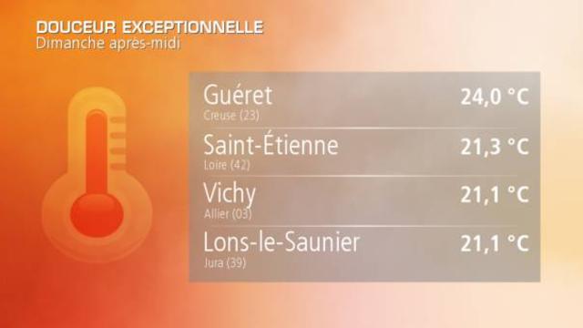 *21,3°C à Saint-Etienne (42) et à Vichy (03)