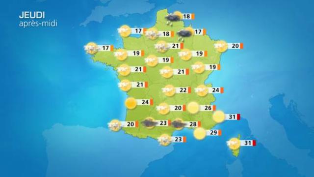 La fraîcheur est au rendez-vous du lever du jour dans les régions de la moitié nord où les thermomètres indiquent régulièrement de 7 à 9°C. Dans la moitié sud, les minimales atteignent une dizaine voire une douzaine de degrés et jusqu’à 23°C entre la Côte d’Azur. Le ressenti reste frais également l’après-midi, accentué par un vent de nord-ouest sensible, avec de 17 à 21°C au mieux au nord de la Loire et jusqu’à 31°C dans l’extrême sud-est du pays.