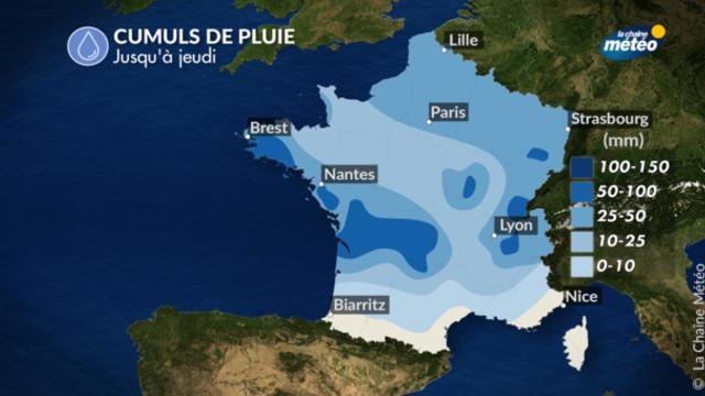 Après un week-end pluvieux, on n'attend pas d'amélioration significative. L'anticyclone des Açores est aux abonnés absents et les perturbations atlantiques continuent à défiler, nous apportant beaucoup de pluies, sauf dans le sud-est qui reste privilégié.