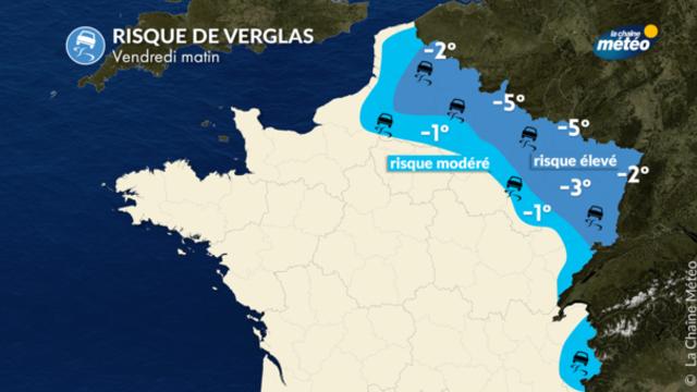 Un épisode marqué de neige se prolonge jusqu’à vendredi matin sur les régions qui s’étendent du nord des Hauts-de-France à l’Alsace. Associé à l’air de plus en froid, il engendrera un verglas assez généralisé et des chaussées très glissantes sur les zones les plus au nord jusqu’à vendredi. Prudence car les chaussées resteront très glissantes et les dommages sur les structures pourraient rendre les difficultés de circulation très compliquées.
