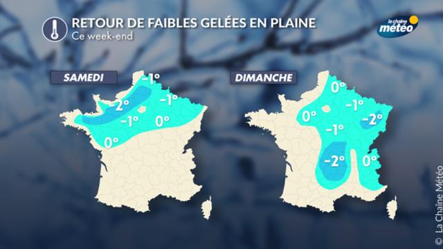 Avec l'arrivée d'air beaucoup plus frais par le nord et un ciel dégagé pendant la nuit, il fera frais le matin avec de faibles gelées blanches dans les campagnes de la moitié nord. Dans l'après-midi, les températures resteront encore légèrement supérieures aux normales de saison avec 9 à 14°C au nord et de 13 à 18°C au sud.