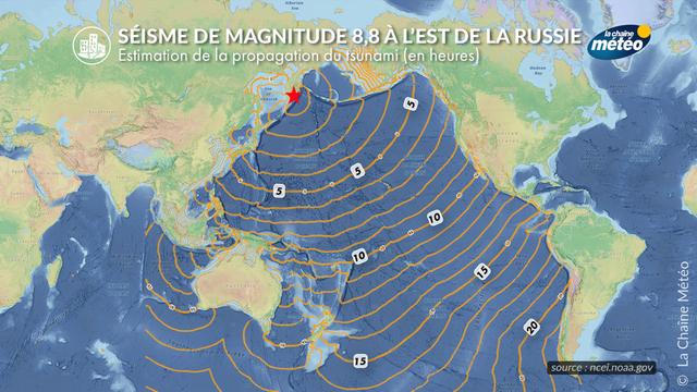 Actualités Météo Un tsunami peut se déplacer à 800 km/h soit la vitesse d'un avion de ligne Par Florent SCHINDLER, mis à jour le 30/07/25 à 16h42 Consulter la météo de votre ville Le déplacement d'une onde peut atteindre 800 km/h et traverser le globe en quelques heures © NCEI.NOAA.GOV / La Chaîne Météo De nombreux pays pays ont émis une alerte au tsumani suite au séisme Russe © La Chaîne Météo Partagez cet article À lire aussi
