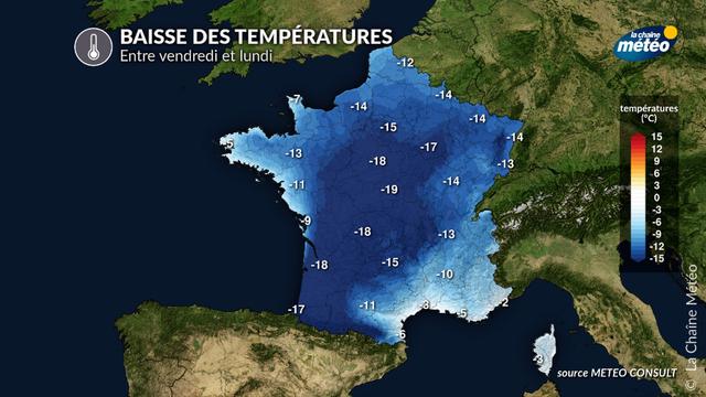 Au cours du week-end, de l'air plus frais va s'infiltrer sur la France et entrer au contact de l'air chaud. Cette situation sera propice à une dégradation du temps avec le retour des orages, parfois forts du sud-ouest au centre-est et jusqu'en basse vallée du Rhône. C'est au cours de la journée de dimanche que les pluies orageuses seront les plus copieuses dans le sud et l'est. Avec l'arrivée de la perturbation pluvio-orageuse, les températures perdront 10 à 15°C entre samedi et dimanche.