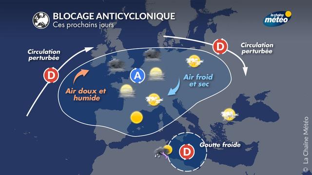 Depuis plusieurs jours, l’anticyclone s’impose sur la France, garantissant un temps stable. En surface, de légères infiltrations d’air humide venues de la mer du Nord se combinent à un fort refroidissement nocturne. Résultat : l’humidité se condense près du sol, formant ces nappes de brouillard parfois denses au petit matin, notamment dans les vallées du nord et du centre du pays. Avec le passage très atténué d'un petit front froid ce mercredi matin, des bruines étaient localement associées à ces brouillards.