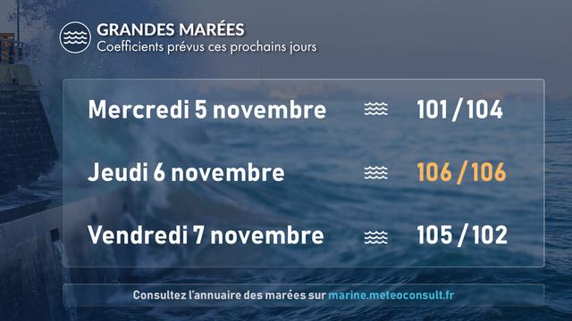 Les coefficients de marée s’élèvent au-dessus de 100 sur plusieurs stations littorales en France pour aujourd’hui, demain et vendredi.