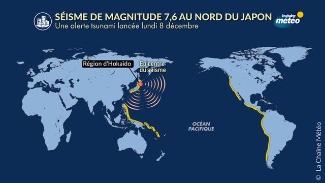 Un séisme de magnitude 7,6 au large du nord-est du Japon, ce lundi 8 décembre 2025, a déclenché une alerte tsunami sur une partie de la façade Pacifique. Les vagues observées sont restées modestes, mais les autorités ont appliqué des consignes strictes d’éloignement du littoral.