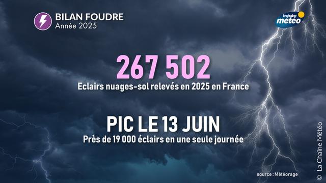 Dans le contexte d'une année 2025 chaude, la 4e plus chaude depuis le début 1900 en France, le bilan des orages et du foudroiement a été pauvre en raison notamment d'un été particulièrement sec dans la moitié sud.