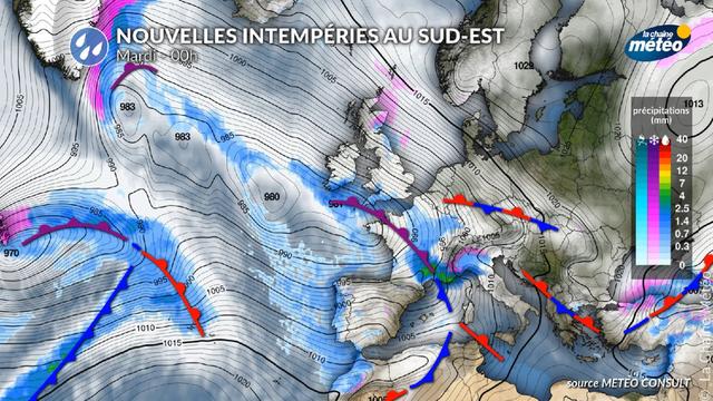 La période la plus délicate se situera entre lundi après-midi et mardi matin, avec la formation d’une dépression secondaire sur l’ouest de la Méditerranée. Le vent d’est à sud-est se renforcera nettement et les pluies s’intensifieront sur les Cévennes, tout en s’étendant aux plaines du Languedoc. La Provence-Côte d’Azur pourrait aussi être concernée, avec le Var particulièrement exposé à cet épisode.