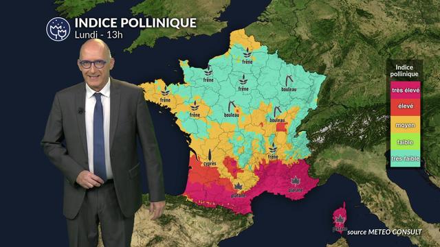 La journée de lundi est marquée par une dégradation nuageuse sur une grande partie de la France avec quelques pluies faibles et un vent d’ouest sensible. Ces conditions météorologiques devraient globalement limiter la dispersion des pollens sur de nombreuses régions. En revanche, près de la Méditerranée, le soleil et le vent continuent de favoriser la circulation des pollens, notamment ceux de cyprès.