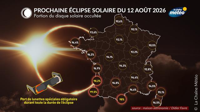 Dans exactement 4 mois, le 12 août 2026 au soir, une éclipse solaire quasi totale va se produire en France, une première depuis celle du 11août 1999 sur le territoire, avant la prochaine prévue en 2081...