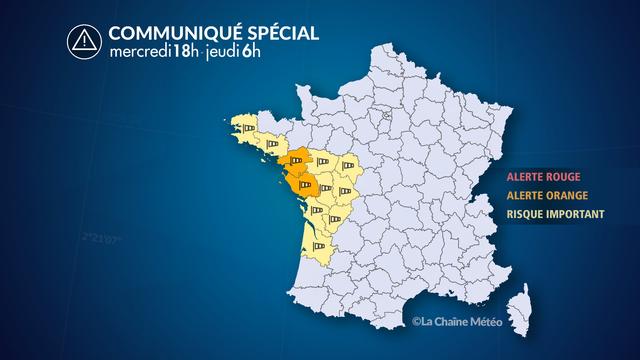 Cette nuit, ces fortes rafales rentrent à l'intérieur des terres jusqu'aux Deux-Sèvres. Dans le même temps, le vent continuera de se renforcer sur les littoraux avec des rafales voisines de 100 à 110 km/h. La plus grande vigilance est recommandée dans tous vos déplacements, car des chutes d'arbres resteront possibles, notamment autour de Nantes et La Roche-sur-Yon.