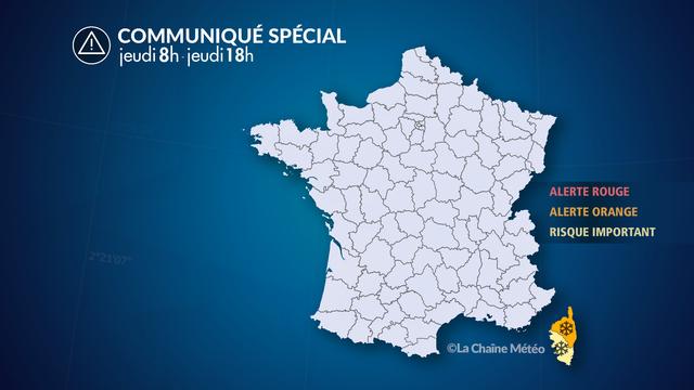 Ce jeudi, les précipitations concernent encore la Corse toute la journée. Les chutes de neige persistent avec une limite pluie-neige qui s'établit vers 400 mètres. Ces précipitations d'intensité modérée se poursuivent essentiellement sur l'est et le centre de la Corse. La limite pluie/neige, qui se situe vers 400 mètres ce matin, remontera au-dessus de 1200 mètres ce soir.