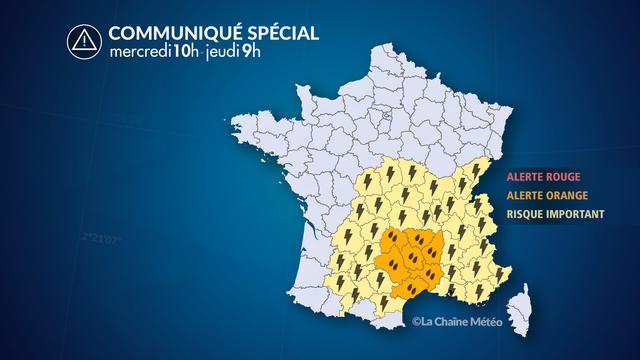 Dans la nuit de mercredi à jeudi, les orages les plus fort balaient toutes les régions allant du Languedoc et de la vallée du Rhône aux Alpes jusqu'en Provence Côte d'Azur. Prudence, car ces orages pourront apporter des cumuls de pluies très importants en très peu de temps.