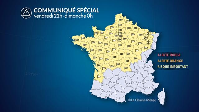 Après minuit, le front perturbé se sera évacué vers l'Allemagne et le vent soufflera nettement moins fort dans le nord-est ; l'alerte vent pourra être levé. En revanche, un autre communiqué spécial prendra le relais pour les fortes précipitations attendues dans le sud-ouest entre dimanche et lundi.