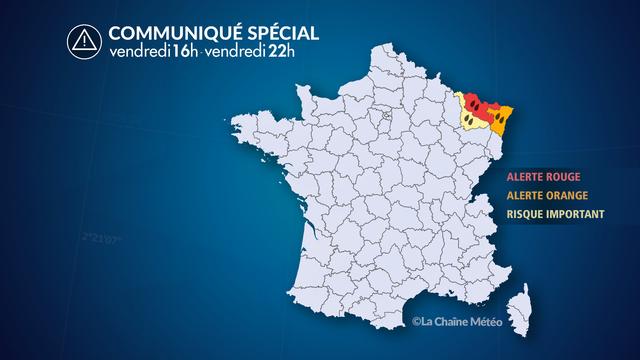 Dans un contexte de marais barométrique, un minimum dépressionnaire circule en Allemagne, provoquant de fortes pluies orageuses jusqu'à ce vendredi ce soir. Ces pluies débordent sur l'extrême nord-est avec des cumuls qui approchent localement les 100 mm en Moselle. La situation est critique avec de fortes inondations dans des secteurs localisés.