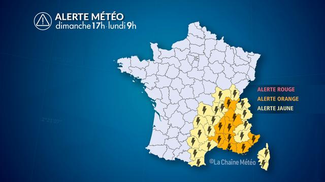C'est ce soir et en première partie de nuit de dimanche à lundi, que l'épisode d'intempéries atteint son pic d'intensité entre les Cévennes, Rhône-Alpes, la Franche-Comté et la Provence Côte d'Azur avec de violents orages accompagnés de grêle.